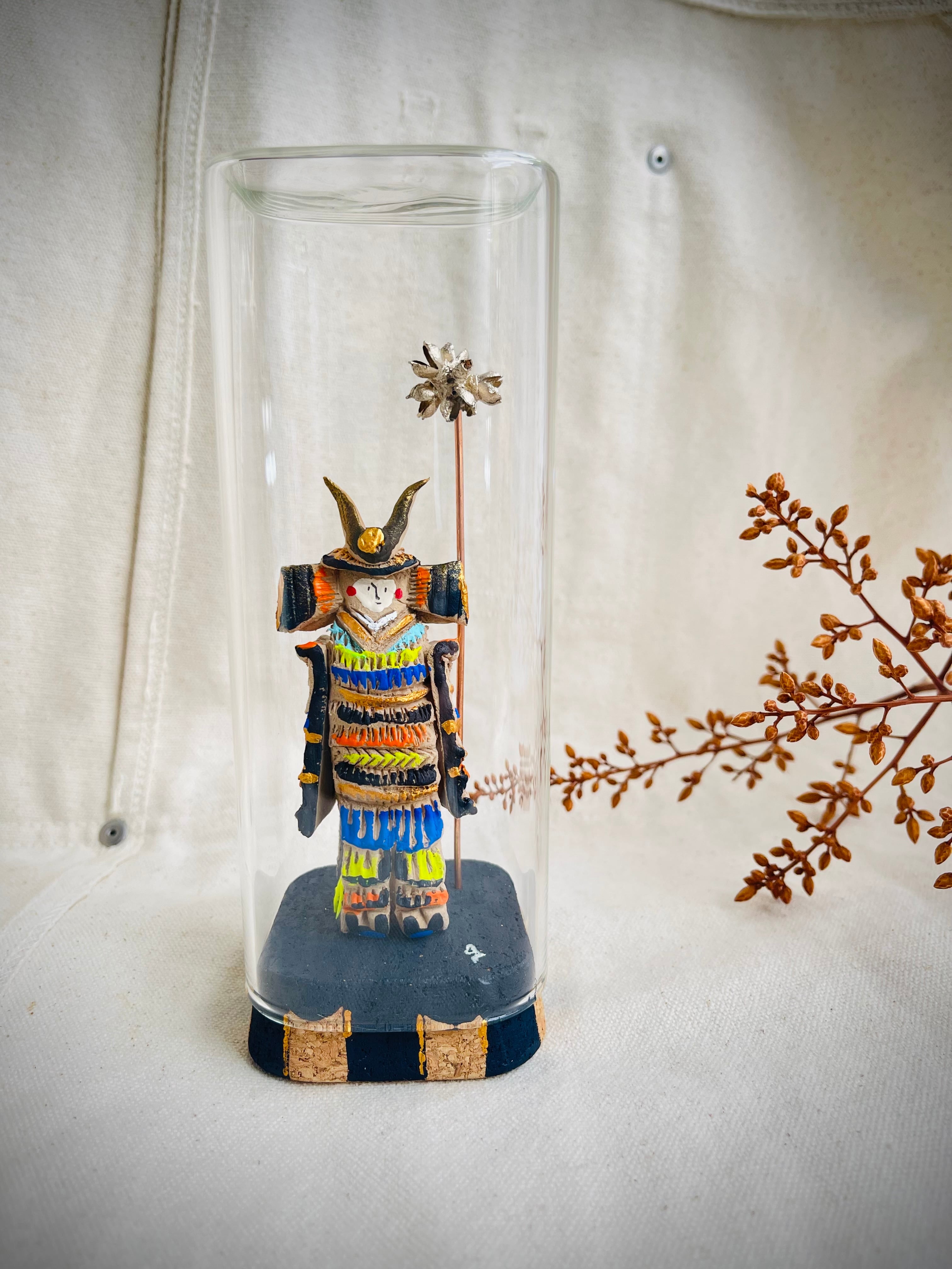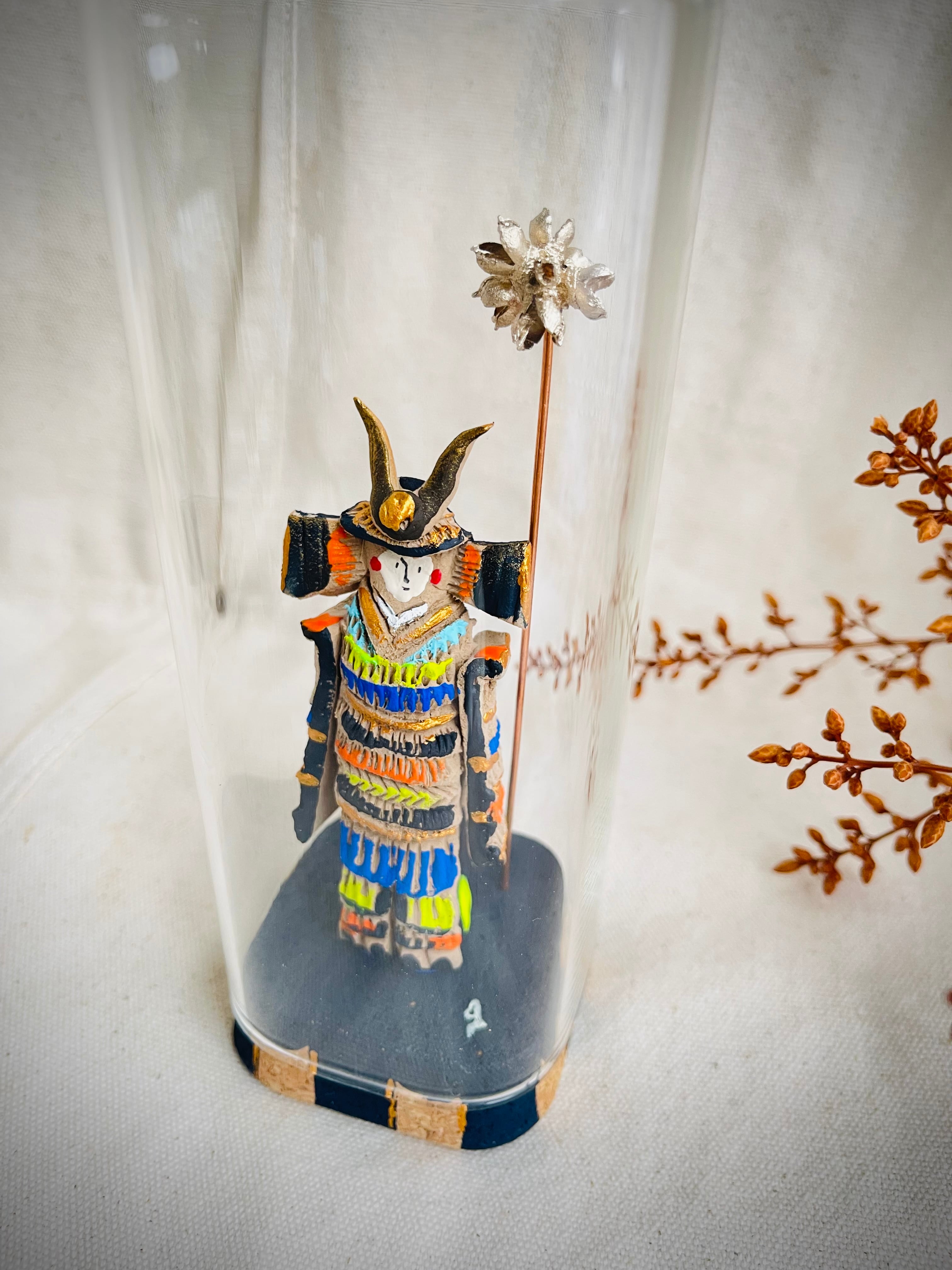 ちいさな土人形風の、兜のお飾りを作りました。
