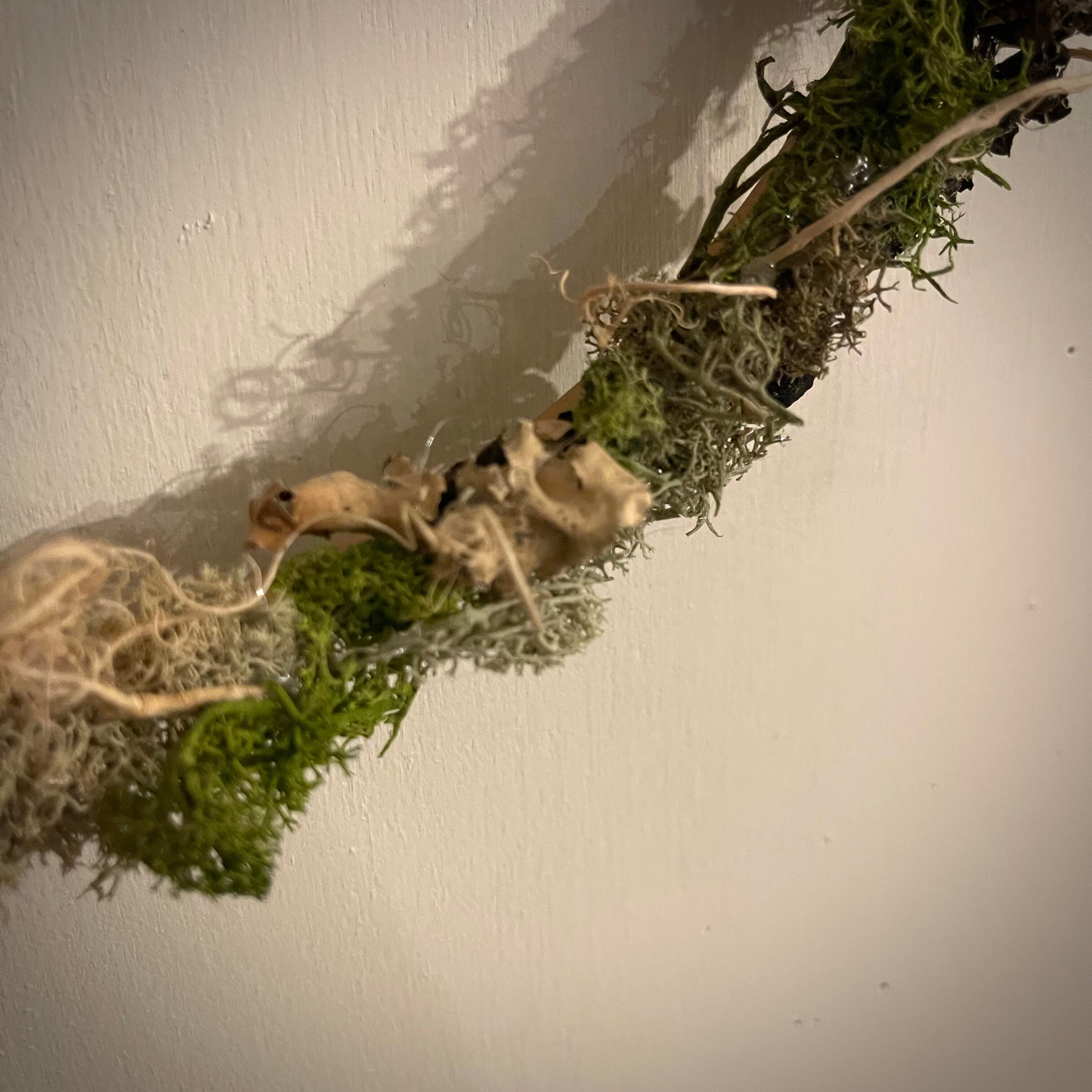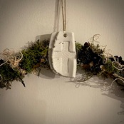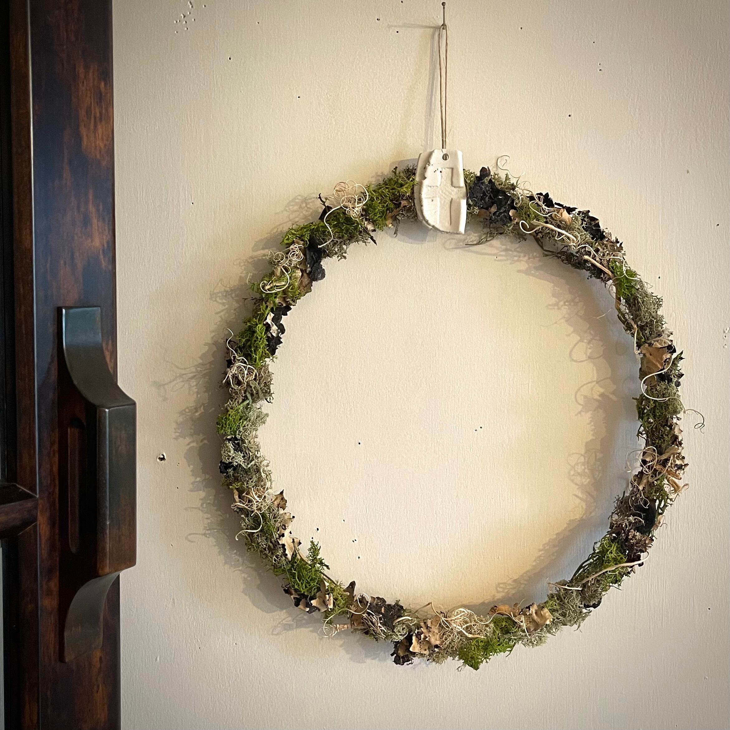 素材:gaju陶作のクロス(天草陶石)自然素材、プリザーブドフラワー(コケ)麻、など。
