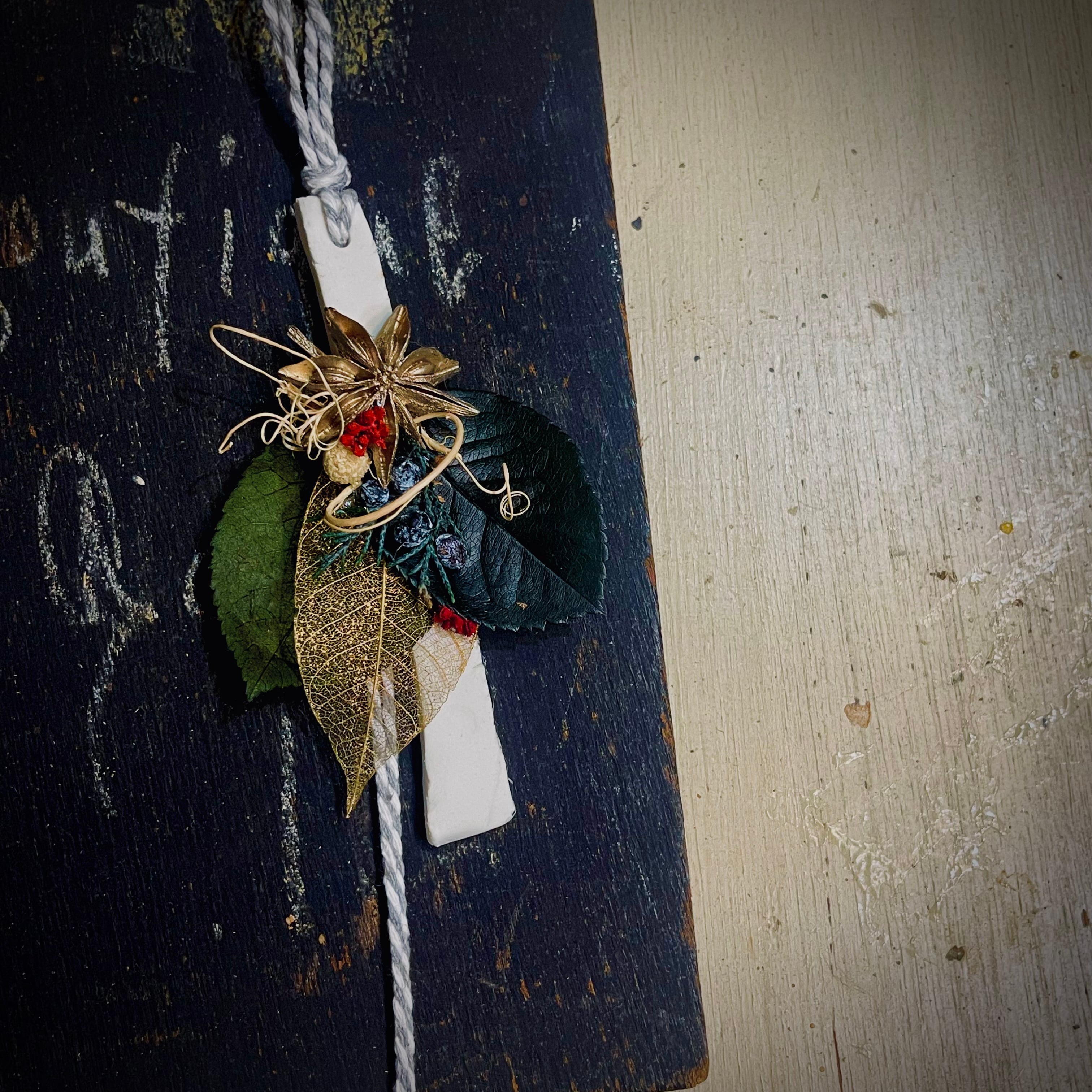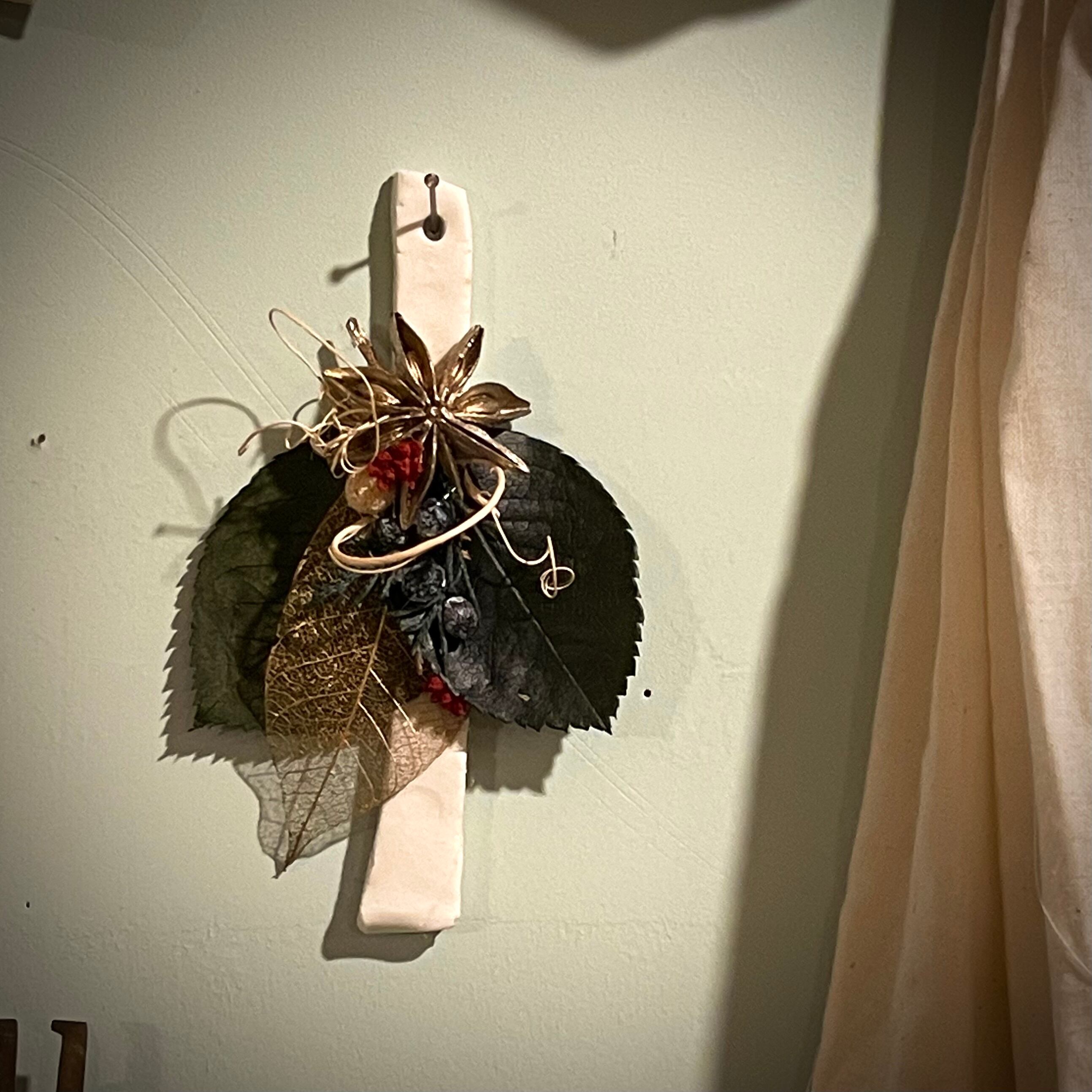 素材:gaju陶作の小さな板(天草陶石)自然素材、プリザーブドフラワーなど。
