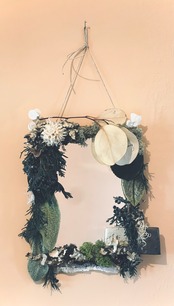 素材 : 鏡、木、プリザーブドフラワー、gaju作陶タイル、紙、布、金属など。